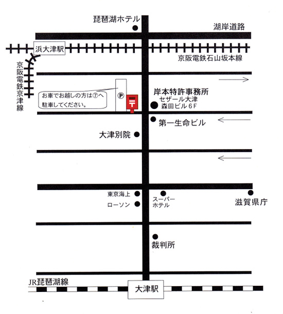 ※大津駅より中央大通りを琵琶湖に向かって歩いてください。