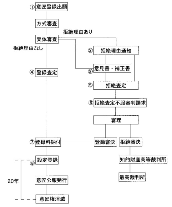 意匠権の設定登録後、権利内容を記載した意匠公報が発行され、意匠の内容が公表されます。